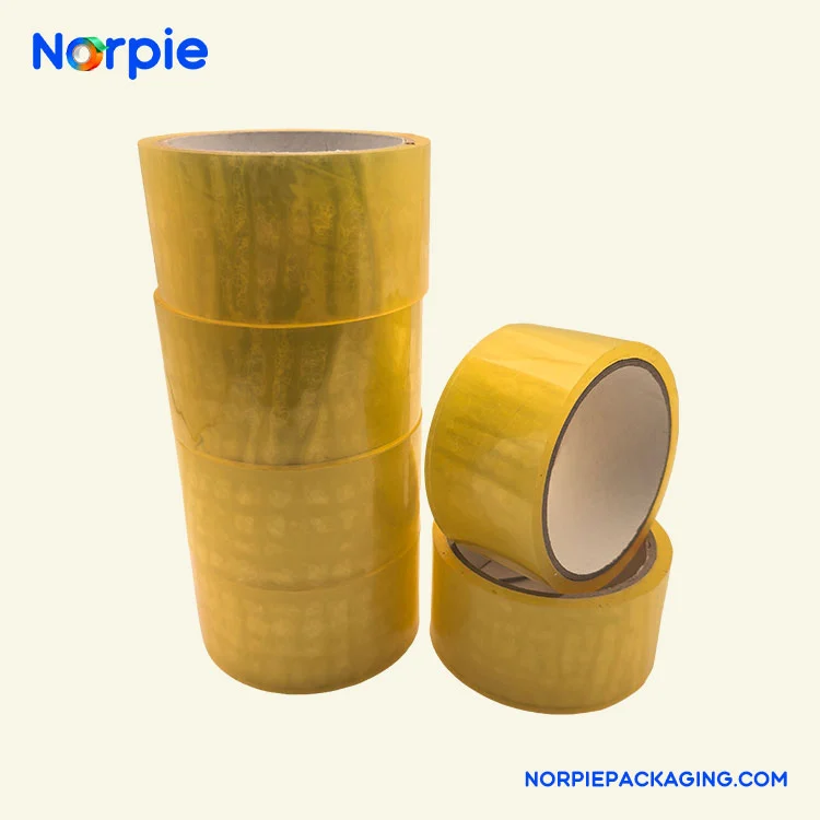 Gumagawa ang Norpie® ng Light Yellow Packing Tape gamit ang premium na BOPP film bilang base material, na pinahiran ng eco-friendly na water-based na acrylic pressure-sensitive adhesive. Nagtatampok ang produkto ng kapal na 0.048mm, na may paunang tack na hindi bababa sa 12# steel ball at isang tack retention time na higit sa 20 oras, na nag-aalok ng mahusay na pagganap ng pagbubuklod at mga benepisyo sa kapaligiran. Ang water-based na pandikit ay hindi nakakalason at walang amoy, na may nilalamang VOC na mas mababa sa pambansang pamantayan, at angkop para sa paggamit sa mga temperaturang mula-5 ℃ hanggang 50 ℃.